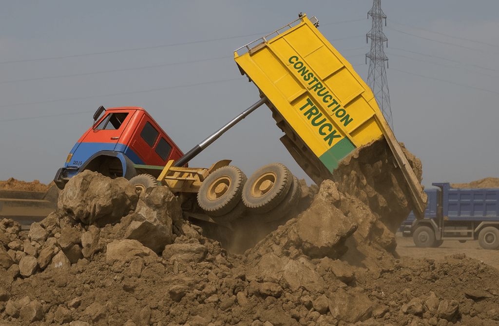 - Dump truck tip-overs due to strong gusts destabilizing vehicles during unloading.