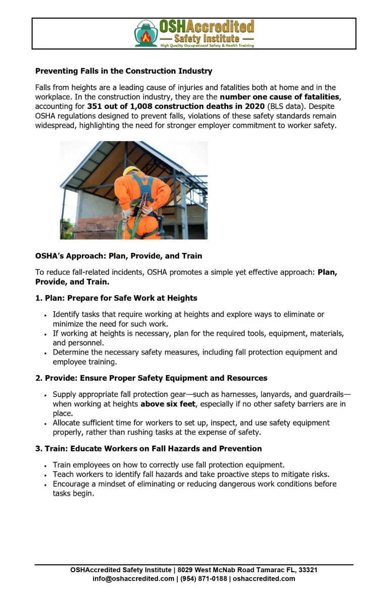 To reduce fall-related incidents, OSHA promotes a simple yet effective approach: Plan, Provide, and Train.