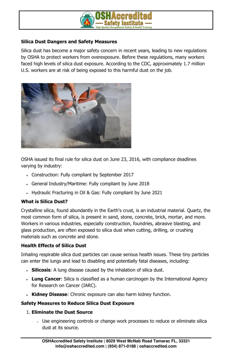 Silica Dust Dangers and Safety Measures